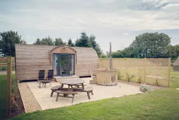 Located just ten minutes outside of Bridgwater, this scenic glamping site offers a relaxing getaway in the Somerset countryside. You can spend days exploring the Quantock Hills or the onsite activities, with evenings unwinding with a glass of wine made from grapes grown in front of your pod! All of the Wigwam pods come with a simple interior including sleeping platforms and foam mattresses. Bedding and linen are not included so you will need to bring this with you. You will have some simple cooking appliances, including a kettle, microwave, a toaster and a fridge. Cooking equipment and crockery are not provided, so be sure to pack these in the car. Heating will keep you cosy on those cooler nights, and there are electric plug sockets for charging too. The Small Quantock, Large Quantock and Vineyard Wigwams are all family friendly. They also have their own patio areas with a fire pit and BBQ, great for unwinding when the sun is shining. For those looking for more of a romantic getaway, the Hillview Wigwams are adult only. These sleep up to two and are the only ones to have their own private wood-fired hot tub, with complimentary wood and a bottle of wine included. A few steps away you will also have your own private bathroom with a loo, sink and shower. There are also cosy, equipped ensuite lodge cabins that sleep up to six people. Interiors include a double bed and seating that converts into either two double beds or two singles (bedding is only included for the double bed). There are kitchenettes with a fridge, a small oven, a microwave, heating, crockery, a dining area, and WiFi. Outside, you can enjoy your own wood-fired hot tub, fire pit, wooden picnic table, benches, and deck chairs, too. One bag of wood, complimentary wine, and burgers are provided too! Please ensure you bring your own towels and additional bedding for the other beds. Dogs are welcome in all of the Wigwam pods and lodge cabins, so you don't need to leave anyone behind. The site is also home to a range of shepherd's huts and bell tents!