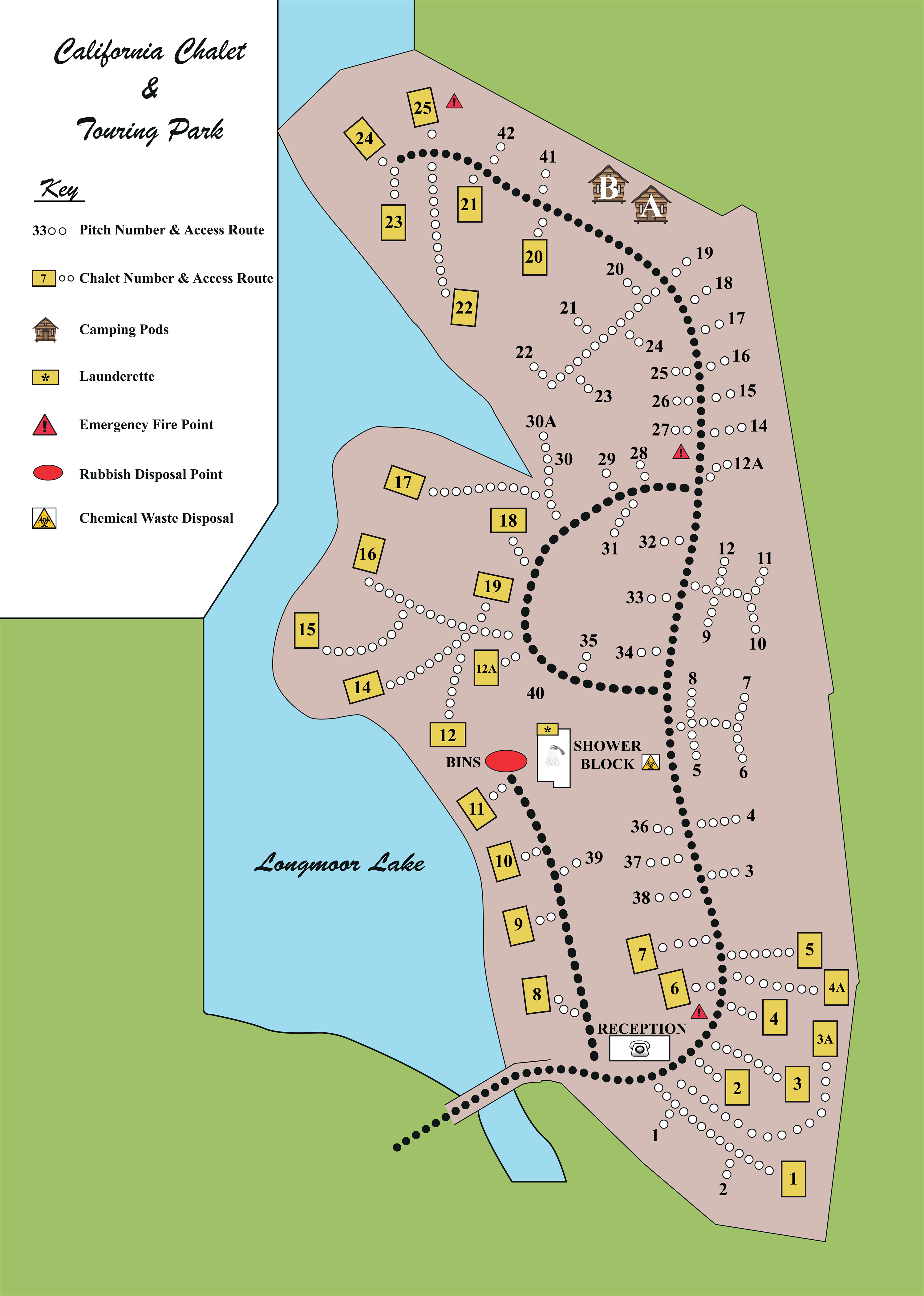 Can I park by the pod at California Chalet and Touring Park?