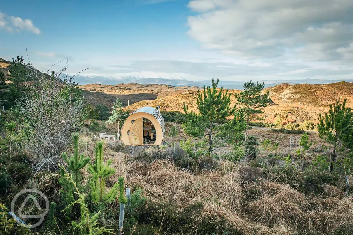 Pod with a unique design inspired by aerospace, within easy reach of the Isle of Skye