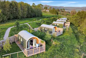 Peaceful pod site in the Yorkshire Dales. Enjoy views of Upper Wharfedale, with a pub within a ten minute walk.